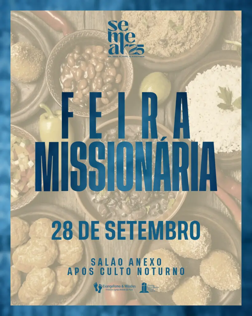 Um tempo de saborear deliciosas comidas em comunhão com a igreja, onde todo valor arrecadado será destinado à Missões. Traga sua família e amigos!