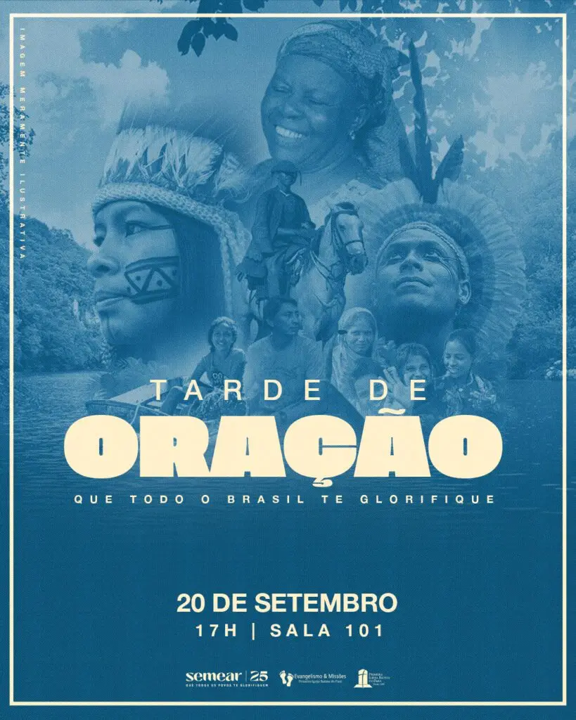 Na “Tarde de Oração”, durante uma hora nossa igreja irá louvar e interceder por nossos missionários e pela salvação do nosso país. Em oração, vamos ao campo missionário. Venha você também!